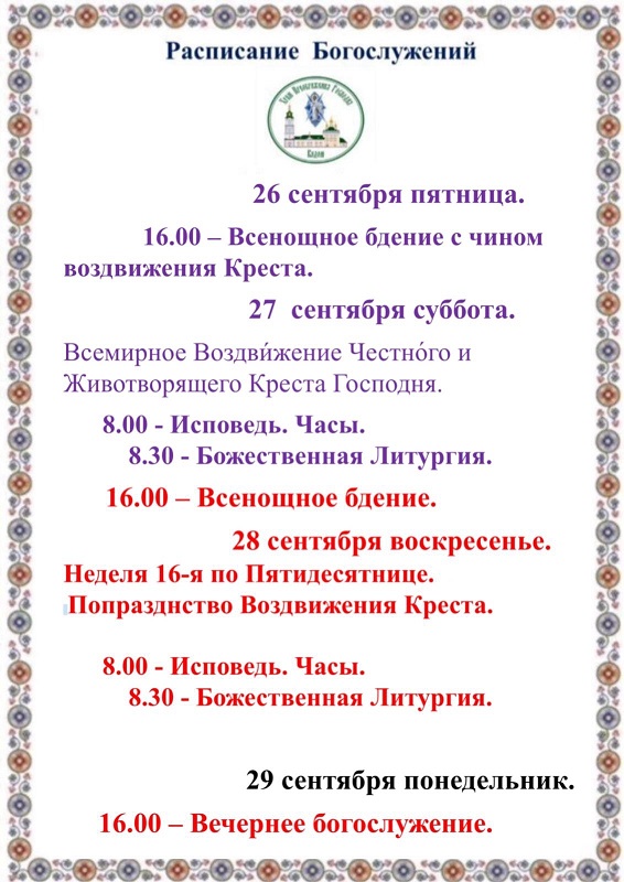 «14 сентября 2025 года настоятель храма Преображения Господня п. Кадом протоиерей Дмитрий Культинов сослужил Преосвященному Исаакию епископу Касимовскому и Сасовскому в кафедральном соборе г. Касимов.»